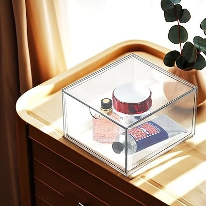 1pc Cosmetics Receiving Box Dust-Proof Desktop Makeup Organizer with Drawer for Skin Care Products Household Storage Box Shelf